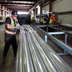 Unimact’s steel line worker preparing critical steel components for solar power generation projects in the southwestern U.S. (Photo: Nextracker)